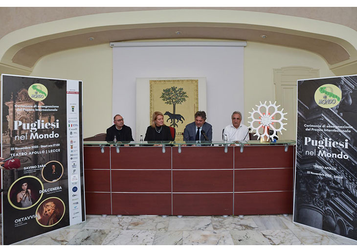I contenuti della manifestazione con l’elenco dei premiati sono stati illustrati nel corso di una conferenza stampa che si è svolta presso l’Open Space di Palazzo Carafa, alla presenza dell’assessore allo Sviluppo economico e alle Attività produttive Maria Gabriella Margiotta, all’assessore al Turismo Giancarlo Capoccia e al presidente dell’Associazione Internazionale Pugliesi nel Mondo Giuseppe Cuscito. “Devo dare atto - ha detto Cuscito - della disponibilità dell’amministrazione per la manifestazione, ogni anno viene organizzata in una diversa città pugliese, ci mancava il Salento. A questa edizione, inoltre, abbiamo voluto premiare anche chi pur non avendo origine pugliese, ha promosso il territorio come la cantante polacca Oktavvia. Inoltre, avevamo indetto un Concorso per spot pubblicitari che valorizzano la Puglia e vincitrice è l’Agenzia McCann Worldgroup Italy per lo spot della Birra Raffo, interamente realizzato in Puglia “decisamente pugliese”. Durante l’evento si esibirà, fra gli altri, anche la cantautrice di origine pugliese Dolcenera.